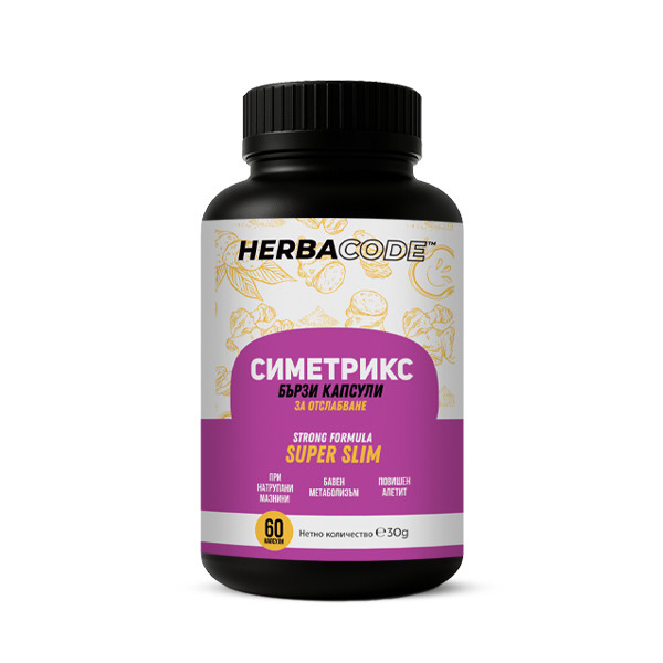 Ако търсите наистина ефективно, но и здравословно решение за борба с излишните килограми, имаме добри новини! СИМЕТРИКС Strong Formula SUPER SLIM от HERBACODE е разработен от екип експерти от Българската Академия на Науките – гаранция за качество и ефективност. Тази формула представлява нов стандарт в натуралното отслабване, като съчетава традиционни билкови компоненти с модерни научни постижения. Насърчава естественото разграждане на мастните натрупвания, особено в проблемните зони като корем, бедра и ханш. Всичко за продукта, вижте ТУК.