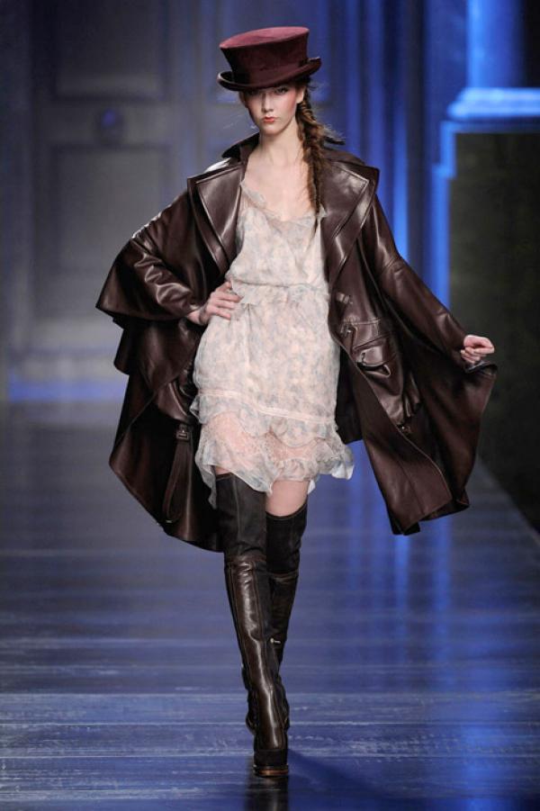 Ефирните, въздушни материи, прекроени така че сякаш се реят около тялото, бяха комбинирани с парчета кожа, вталени сака, високи ботуши и викториански аксесоари по един уникален маниер, който, като че ли, притежава само прословутата модна къща.