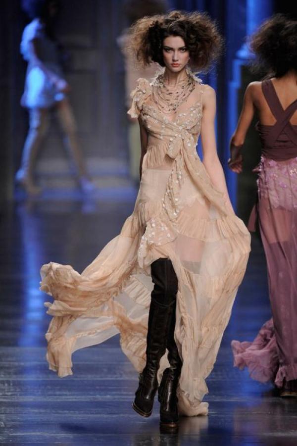 Ефирните, въздушни материи, прекроени така че сякаш се реят около тялото, бяха комбинирани с парчета кожа, вталени сака, високи ботуши и викториански аксесоари по един уникален маниер, който, като че ли, притежава само прословутата модна къща.