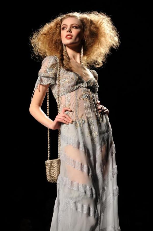 Ефирните, въздушни материи, прекроени така че сякаш се реят около тялото, бяха комбинирани с парчета кожа, вталени сака, високи ботуши и викториански аксесоари по един уникален маниер, който, като че ли, притежава само прословутата модна къща.