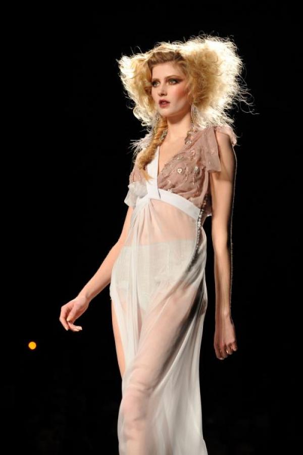 Ефирните, въздушни материи, прекроени така че сякаш се реят около тялото, бяха комбинирани с парчета кожа, вталени сака, високи ботуши и викториански аксесоари по един уникален маниер, който, като че ли, притежава само прословутата модна къща.