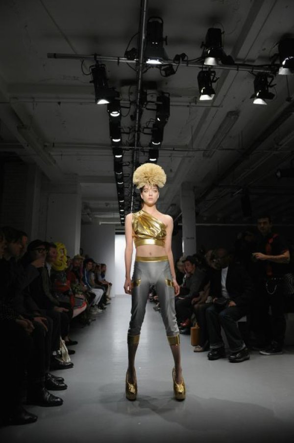 Моделите сякаш излезли от филм на Ларс фон Триер разкриха една вселена, в която властват както златните целуфанени материи, облекли класическите sci-fi героини, така и тъмните образи, които тъмните субкултури издигат в култ.