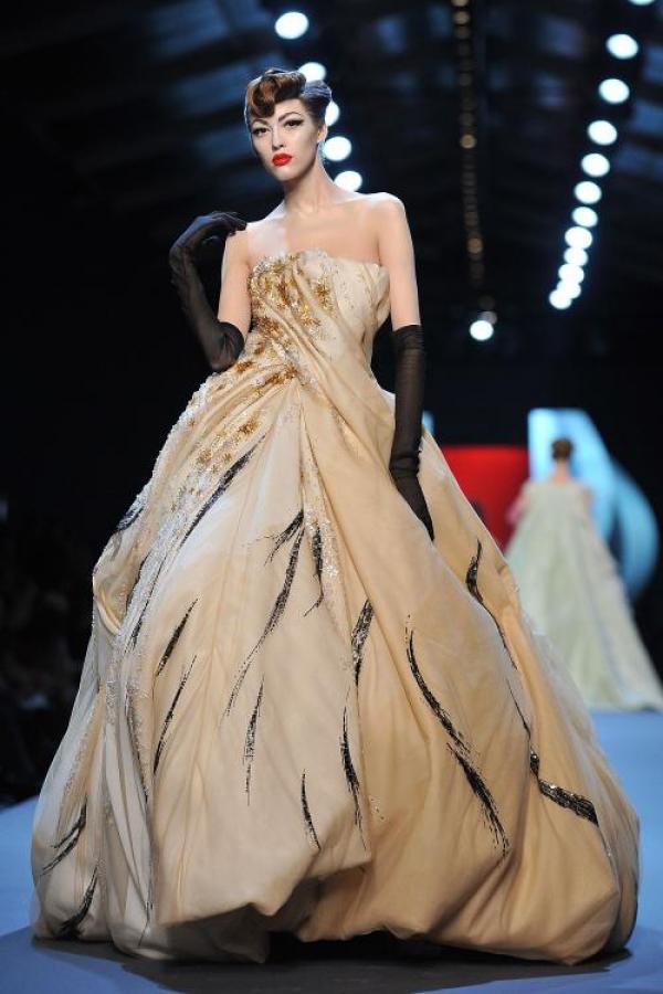 Докато гледа дефилето, човек запчова да си мисли, че тези облекла са музейни експонати. Силуетът е издължен, талията е висока.