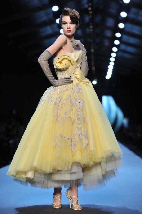 Докато гледа дефилето, човек запчова да си мисли, че тези облекла са музейни експонати. Силуетът е издължен, талията е висока.