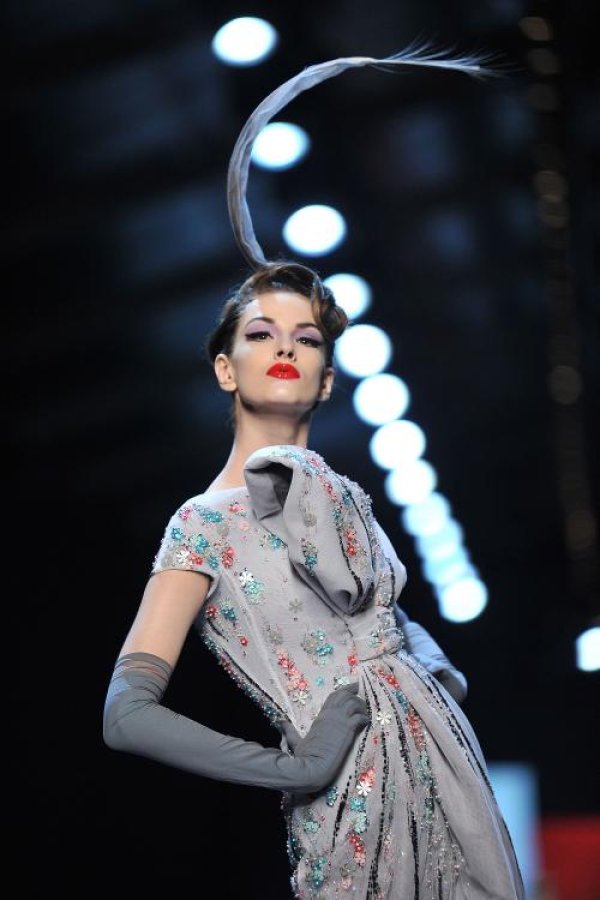 Докато гледа дефилето, човек запчова да си мисли, че тези облекла са музейни експонати. Силуетът е издължен, талията е висока.