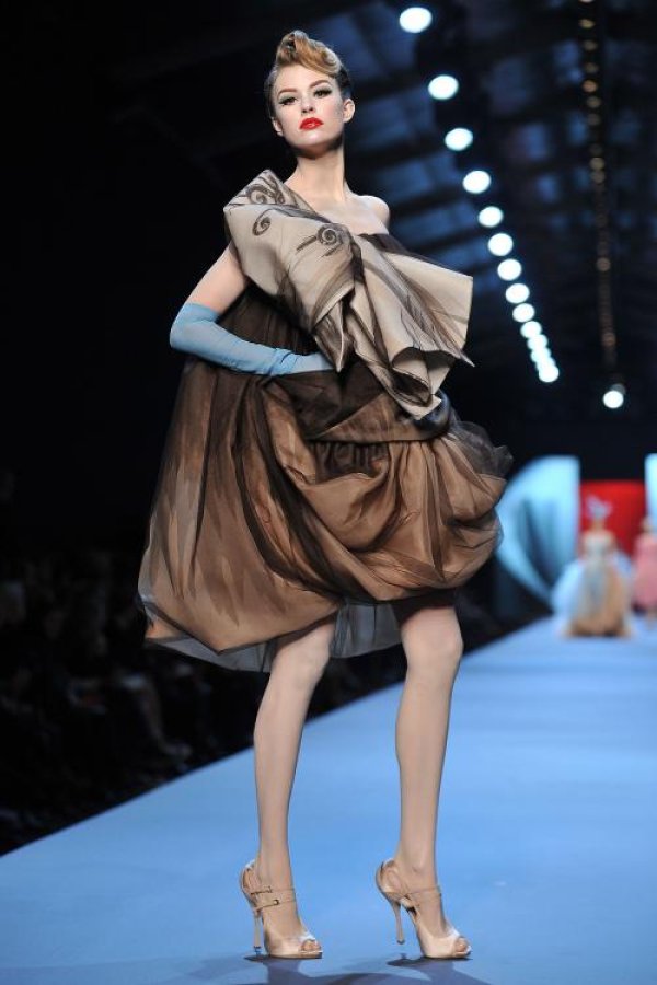 Докато гледа дефилето, човек запчова да си мисли, че тези облекла са музейни експонати. Силуетът е издължен, талията е висока.