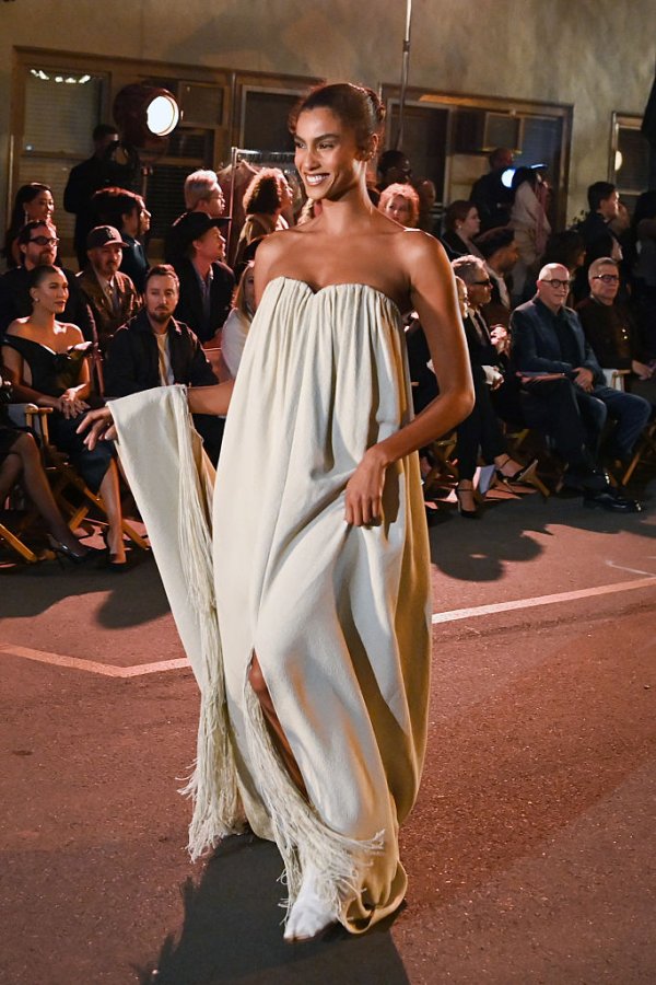Дефилето включваше и ярък микс от почит към известни филмови герои, разделени в осем действия по епохи, включително танцово изпълнение от измислената страна Уаканда от „Черната пантера“ и почит към емблематичната героиня на Даян Кийтън от „Ани Хол“.