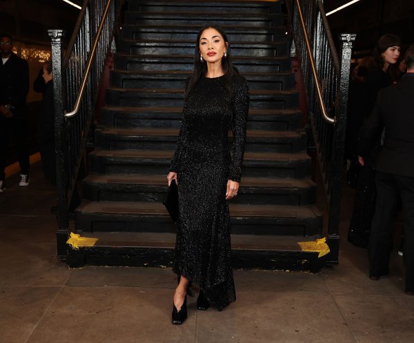 На дефилето имаше бляскава светска дама, мрачно разположена в гигантско пернато палто, носено върху малка червена рокля с пайети, моден редактор, облечен в дънки и рокля, бродирана с кристали, преметната върху тениската ѝ, галерист от Бруклин в костюм от туид и тениска с пайети „Обичам Ню Йорк“, изпълнителна директорка с поло, слънчеви очила и разкошно плетено палто в камилски цвят.